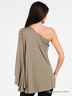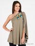 Детали: округлый вырез горловины, один длинный рукав, полочка украшена декоративной яркой нашивкой из пайеток в форме бабочки