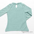 Приталенная кофта с длинным рукавом застегивается на одну пуговицу на спинке. Полочка декорирована пришитыми рюшами.