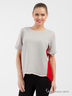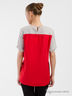 Очаровательная кофта с короткими рукавами и округлым вырезом горловины. Модель выполнена из тканей контрастных расцветок. Модель свободного покроя. Отличный вариант на каждый день.