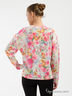 Кофта свободного покроя с длинными рукавами и округлым вырезом горловины. Модель выполнена из принтованной ткани контрастной расцветки. Отличный вариант на каждый день.