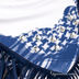 Стильная кофта из тонкого трикотажа, с воротником-лодочкой и длинными рукавами. Спереди оригинальный принт в виде жилетки и платка, декорированного бахромой.