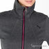 Кофта из плотного флисового трикотажа, спереди рельефные швы, с отделкой клепками. Воротник стойка из трикотажной резинки. Спереди накладные карманы с клапанами. Молния контрастная на розовой основе.