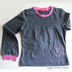 Хлопковая кофточка с розовой отделкой, классический крой, круглый вырез горловины, длинные рукава с небольшой трикотажной манжетой, оригинальный принт на полочке.