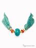 Дизайнерское колье ручной работы из шелковой чесучи с бирюзой, кораллом и майоликой. Застежка-магнит.65см