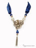 Дизайнерское колье ручной работы из бархата с лазуритом, майоликой и топазами. Застежка-магнит65см