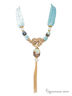 Дизайнерское колье ручной работы из бархата, аквамарина, жемчуга и шелкового шнура 65см