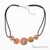 Колье на тонком шнурке с удлинителем дополняется кулоном яркого цвета с красивым рисунком.
