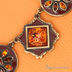 Колье в средневековом стиле из состаренного металла под бронзу с оранжевыми кристаллами, в виде кругов и квадратов на цепи. Составляет комплект с артикулами В1112 и R1042.