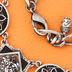 Колье в средневековом стиле из серебристого металла с белыми кристаллами, в виде кругов и квадратов на цепи. Составляет комплект с артикулами В8102 и Е8560.