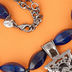 Колье в средневековом стиле. Крест с крупным зеленым кристаллом на ожерелье из синих продолговатых бусин. Составляет комплект с артикулами R6020 и Е6355