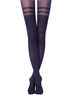 Плотные эластичные фантазийные колготки 50 ден с рисунком "Имитация чулок, в верхней части - имитация крупной сетки."