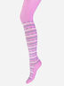 Благодаря яркой основе, представленной в четырех расцветках (голубой, розовый, темно-серый и светло-серый) дополненной миксом цветных тонких горизонтальных полосок, такие колготки смогут стать изюминкой многих стильных детских образов как для праздников, так и для повседневных мероприятий.