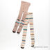 Стильные, яркие колготки из тонкого эластичного трикотажа. Одни однотонные коричневые в темный горох с оригинальными гетрами в полоску. Вторые в разноцветную полоску.