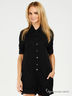 Детали: отложной воротник на небольшой стойке, короткие рукава с небольшой манжетой, застежка на пуговицах, накладные карманы, отрезное по линиии талии, шлевки под ремень, два прорезных кармашка