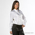 Интересная комбинированная модель. Верх выполнен блузой в классическом стиле с длинным рукавом. На спинке и полочках по две вытачки, обеспечивающие хорошую посадку на фигуре. Спереди и на манжетах застежка на пуговицы. Благодаря детали низа, модель можно носить с юбками и брюкими очень низкой посадки на бедрах.