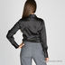 Интересная комбинированная модель. Верх выполнен блузой в классическом стиле с длинным рукавом. На спинке и полочках по две вытачки, обеспечивающие хорошую посадку на фигуре. Спереди и на манжетах застежка на пуговицы. Благодаря детали низа, модель можно носить с юбками и брюкими очень низкой посадки на бедрах.