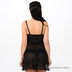 Оригинальная комбинация из тонкой эластичной ткани. Чашки без подкладки и вставка спереди выполнены из эластичной гипюровой ткани. Декорирована оригинальными кружевными вставками и бантиками. Эластичные бретели регулируются по длине.