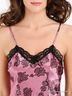 Женская комбинация из тонкой атласной ткани с оригинальным принтом. Тонкие бретели регулируются по длине. Анатомический крой лифа. Декорирована кружевной окантовкой.