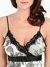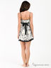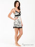 Оригинальная комбинация из натурального шелка с жаккардовым плетением. Тонкие бретели регулируются по длине. Под грудью пристроченный атласный поясок. Лиф анатомического кроя. Изделие декорировано оригинальным принтом и кружевными вставками.