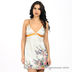 Изящная сорочка на тонких регулируемых бретелях. Декорирована оригинальным принтом, имеет втачной пояс, переходящий в ленты завязывающиеся на спине.