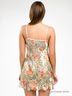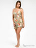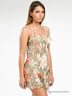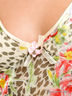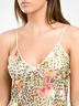 Изящная сорочка из тонкого натурального шелка с пестрым принтом. V-образный вырез декорирован розочкой. Бретели регулируются по длине.