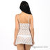 Эротическая кружевная комбинация на тонких регулирующихся бретелях. Лиф с запахом, бретели декорированы оригинальными нашивками в виде цветов. Силуэт расклешенный, снизу дополнена оригинальными вставками из тонкой ткани.