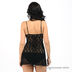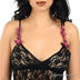 Эротическая кружевная комбинация на тонких регулирующихся бретелях. Лиф с запахом, бретели декорированы оригинальными нашивками в виде цветов. Силуэт расклешенный, снизу дополнена оригинальными вставками из тонкой ткани.
