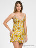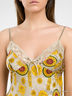 Изящная сорочка из натурального шелка с пестрым принтом. Бретели регулируются по длине. V-образный вырез. Лиф и боковой разрез снизу декорированы кружевом.