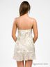 Изящная сорочка на тонких регулируемых бретелях из натурального шелка с цветочным принтом. V-образный вырез. Расклешенный силуэт. Лиф с декоративными складками и розочкой из шелка. Подол отделан широкой оборкой из матового шелка с принтом.