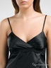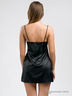 Соблазнительная сорочка на тонких регулируемых бретелях. Лиф декорирован кружевом. Завышенная линия талии. Нижняя часть сорочки с запахом. Верхний край спинки на резинке.
