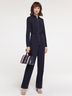 Комбинезон темно-синий. Модель с длинными регулируемыми рукавами, отложным воротником и застежкой на молнию.