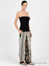 Детали: отрезной топ без бретелей, свободные брючины посажены на небольшую резинку два прорезных кармашка, стильный декор в виде цветка выполненного из отделочной ткани.
