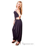 Этнический тренд фасона открыто демонстрирует комбинезон «Шакира». Комбинезон из мягкой эластичной ткани на бретелях, собран изящными защипами по боковым швам. Талия на резинке. Свободные брюки на низкой линии шага мягко опускаются к манжетам.