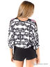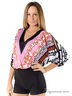 Очаровательный комбинезон "летучая мышь", рукава на резинке 3/4 с разрезом от плеча. Низ - однотонные трикотажные шорты, верх - свободная блуза, с разноцветным геометрическим орнаментом. На шортах - квадратные пуговицы для декора.