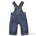 Модный джинсовый комбинезон на подкладке на регулируемых бретельках с удобными застежками на кнопки по бокам и между ножек, декорирован контрастной отстрочкой и эффектом потертости. На модели на 2 года кнопок между ножек нет.