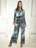 Детали: вырез горловины лодочка, узкие длинные рукава, брючины прямые по всей длине