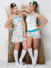Забавный комбинезон с шортами украшен веселым принтом. Бретель завязывается через голову. Отличное дополнение к Вашему гардеробу.