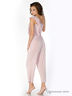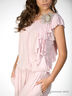 Нежный летний комбинезон из вискозы на резинке. Полочка украшена декоративной брошью и воланами. Широкая бретель на одно плечо. Спереди 2 втачных кармана.