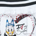 Детали: широкие бретели; втачной пояс на кулиске; два втачных кармана; декорирован контрастными полосами и аппликацией со стразами