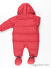 Комбинезон прямого силуэта с капюшоном. Шелковистый подклад, пуховый утеплитель. Несъемные варежки. Застежка на кнопки от ворота до низа брючины. Отстегивающиеся ботиночки с флисовым подкладом. Полочка украшена рисунком и вышивкой.