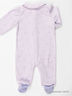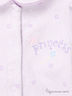 Махровый комбинезон с отложным воротником и длинным рукавом застегивается на кнопки от выреза горловины, застежка расходится в две стороны по шаговому шву и спускается до формованной стопы с трикотажными вставками. Полочка украшена вышивкой. Изделие декорировано рисунками.