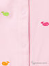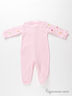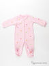 Комбинезон с небольшим воротом-стойкой и длинным рукавом застегивается на кнопки от выреза горловины, застежка расходится в две стороны по шаговому шву и спускается до формованной стопы с трикотажными вставками. Изделие декорировано маленькими вышивками.