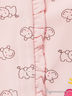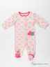Трикотажный комбинезон с округлым вырезом горловины и длинным рукавом застегивается на кнопки от выреза горловины, застежка расходится в две стороны по шаговому шву и спускается до формованной стопы. Изделие украшено рисунками. Передняя часть декорирована нашивкой.