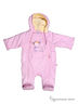 Нежный комбинезон для девочки из мягкого материала. Капюшон. Длинные рукава. Застежка на молнии. На полочке стильный принт.