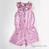 Удобный комбинезон из легкой хлопчатобумажной ткани. Спереди застегивается на 3 пуговицы и на кнопки по шаговому шву, пояс на резинке, накладные кармашки и симпатичная объемная аппликация на груди.