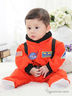 Комбинезон с длинными рукавами и застежкой на молнию. Модель выполнена в виде формы космонавтов "Наса". Размер 70 - ножки закрыты, размер 80, 90 - открыты. Отличный вариант для маленького модника.