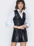 Комбинезон из эко-кожи с отложным воротником. Застегивается на молнию сзади.
