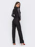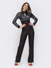 Нарядный комбинезон с лифом из тонкой глитерной ткани, расшитой пайетками. Модель с отложным воротником и разрезом в зоне декольте. Застёгивается на молнию и пуговицу по спинке. Станет идеальным вариантом для обладательниц типа фигуры «прямоугольник», «песочные часы».