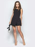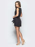 Однотонный плотный комбинезон из структурного тиара с юбкой-шортами. Широкий втачной пояс украшен металлическими полукольцами с завязкой. Застегивается молнией на спинке.