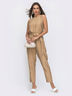 Летний комбинезон с прорезом по спинке. Модель с эластичной деталью по линии талии и вместительными карманами по бокам. Пояс с крупной пряжкой в комплекте.